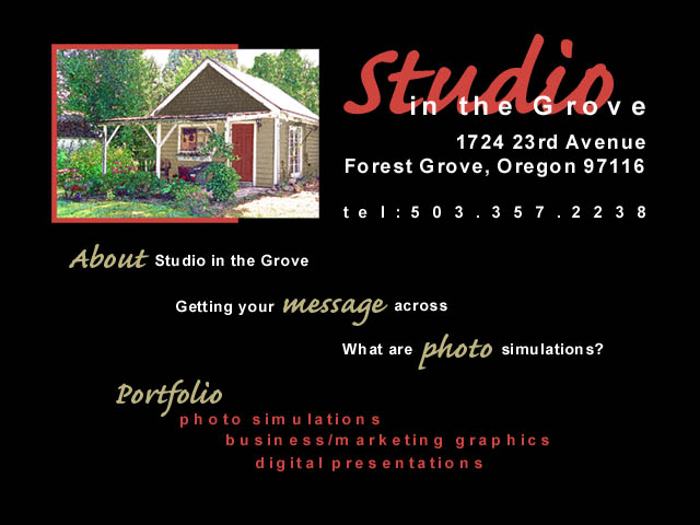 Questions? Send mail to info@studiointhegrove Copyright © 1999 Studio in the Grove Last modified January 27, 2000